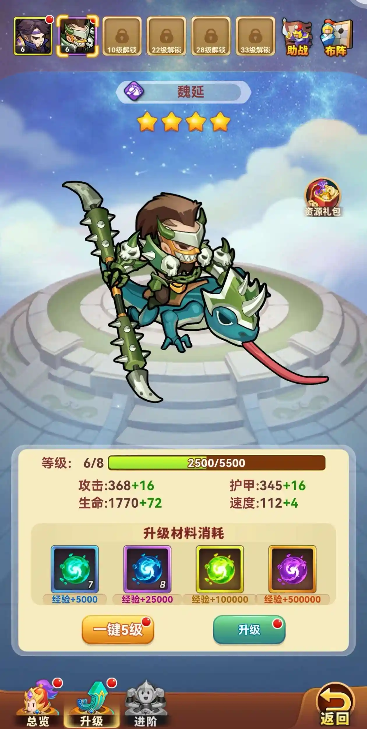 【游戏简介】一款深度三国的放置卡牌手游。梦回三国,扮演一位白手起家的主公,率领招募的武将,排兵布阵,攻城掠地,横扫四方,与各路好强一决高下,一步步拓展霸业,倾覆天下!