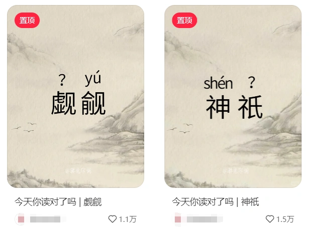 首先刷到这类内容的人,基本都会停留几秒钟,看一下这个字认不认识。停留时间有了