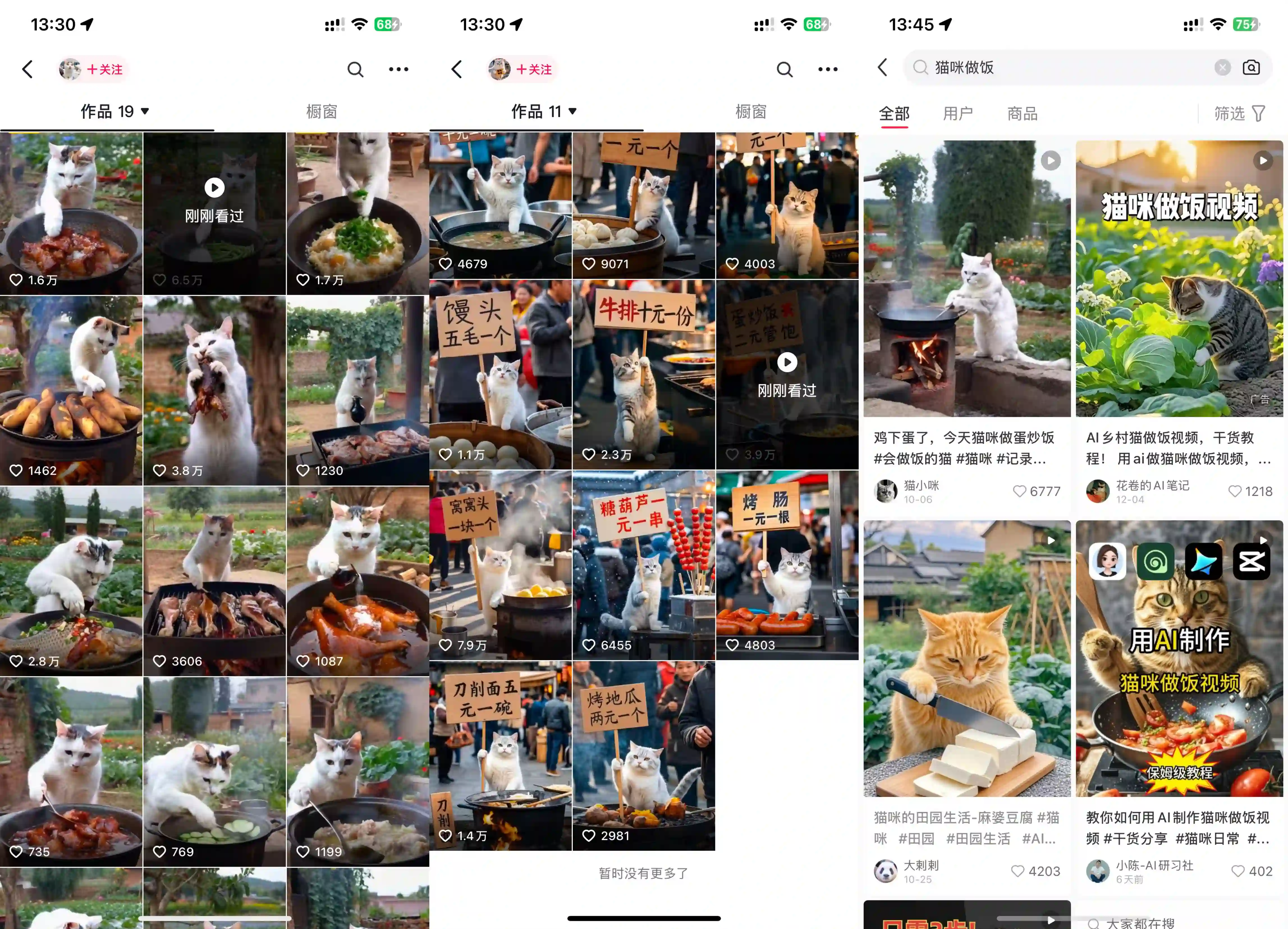 猫咪做饭在小红书、抖音还是挺火的,看看下面这个图,数据都挺好的。