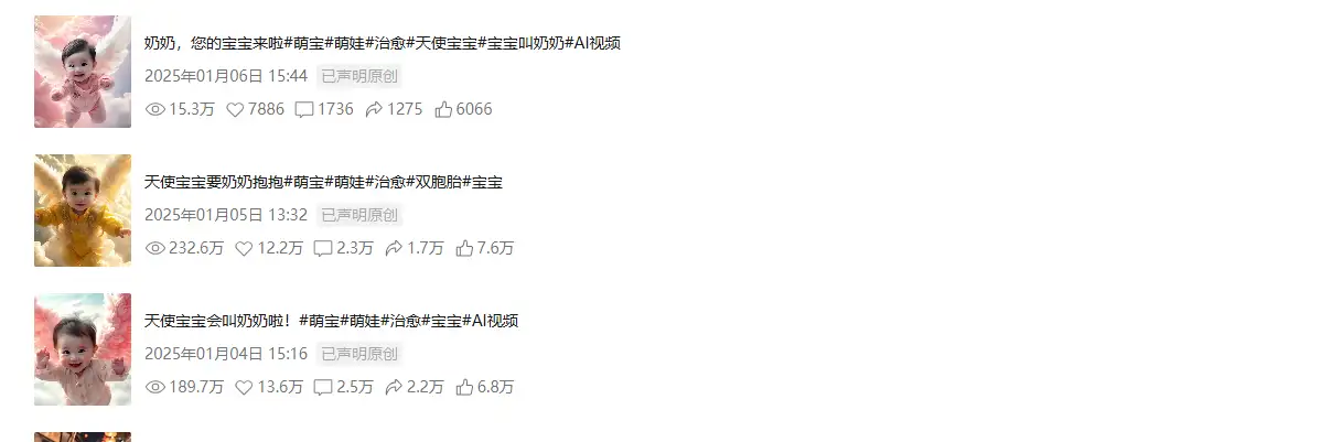 最近,又涌现出了一种新的“流量密码”,一个简单的天使萌宝视频,就能收获10万+的点赞,千万播放,妥妥的流量加速器!