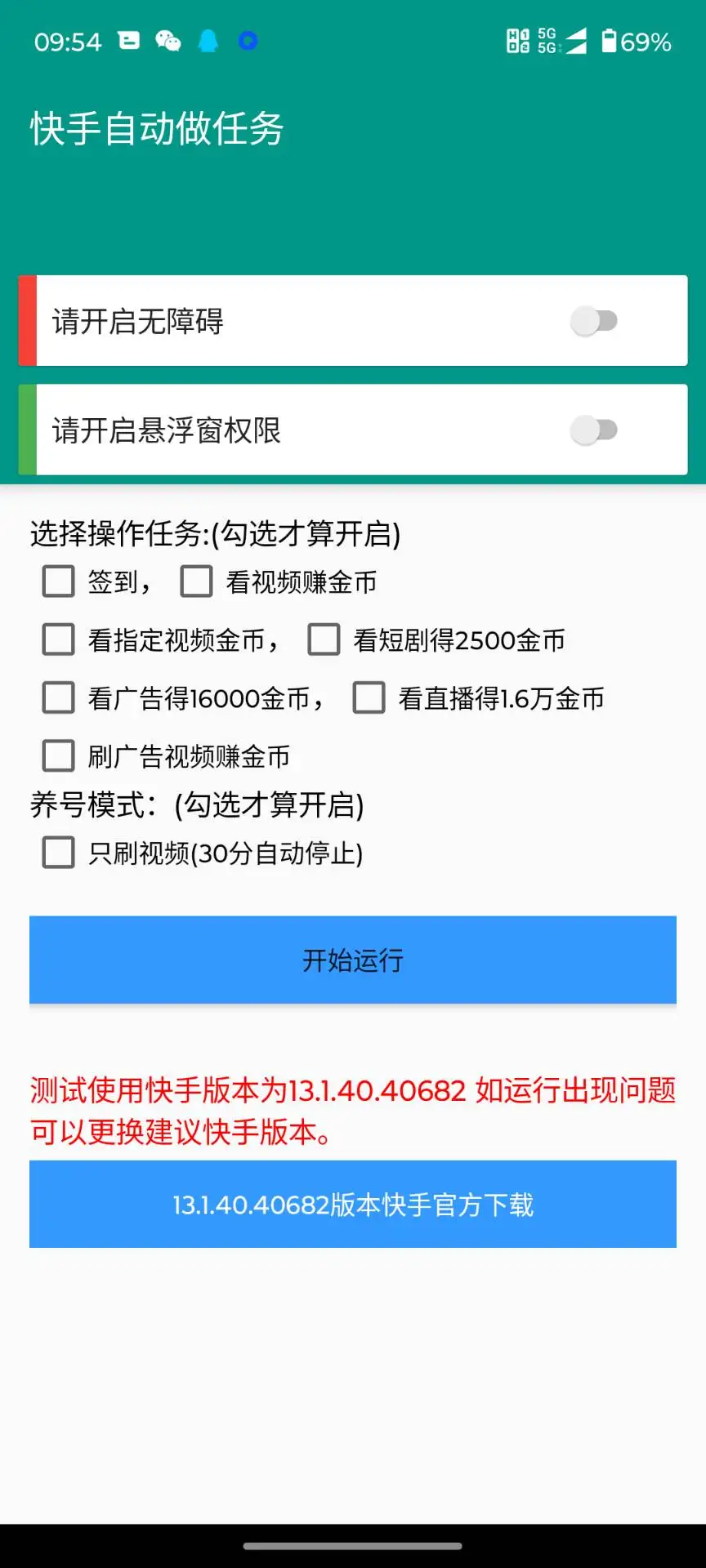 在使用快手自动做任务之前,你需要先开启两项重要权限: