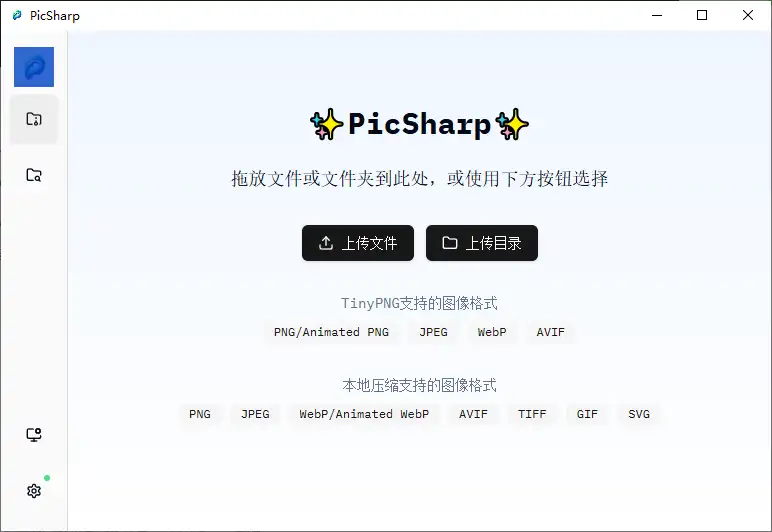 • 支持的图像格式多,如PNG、JPEG、WebP、TIFF、GIF、SVG等