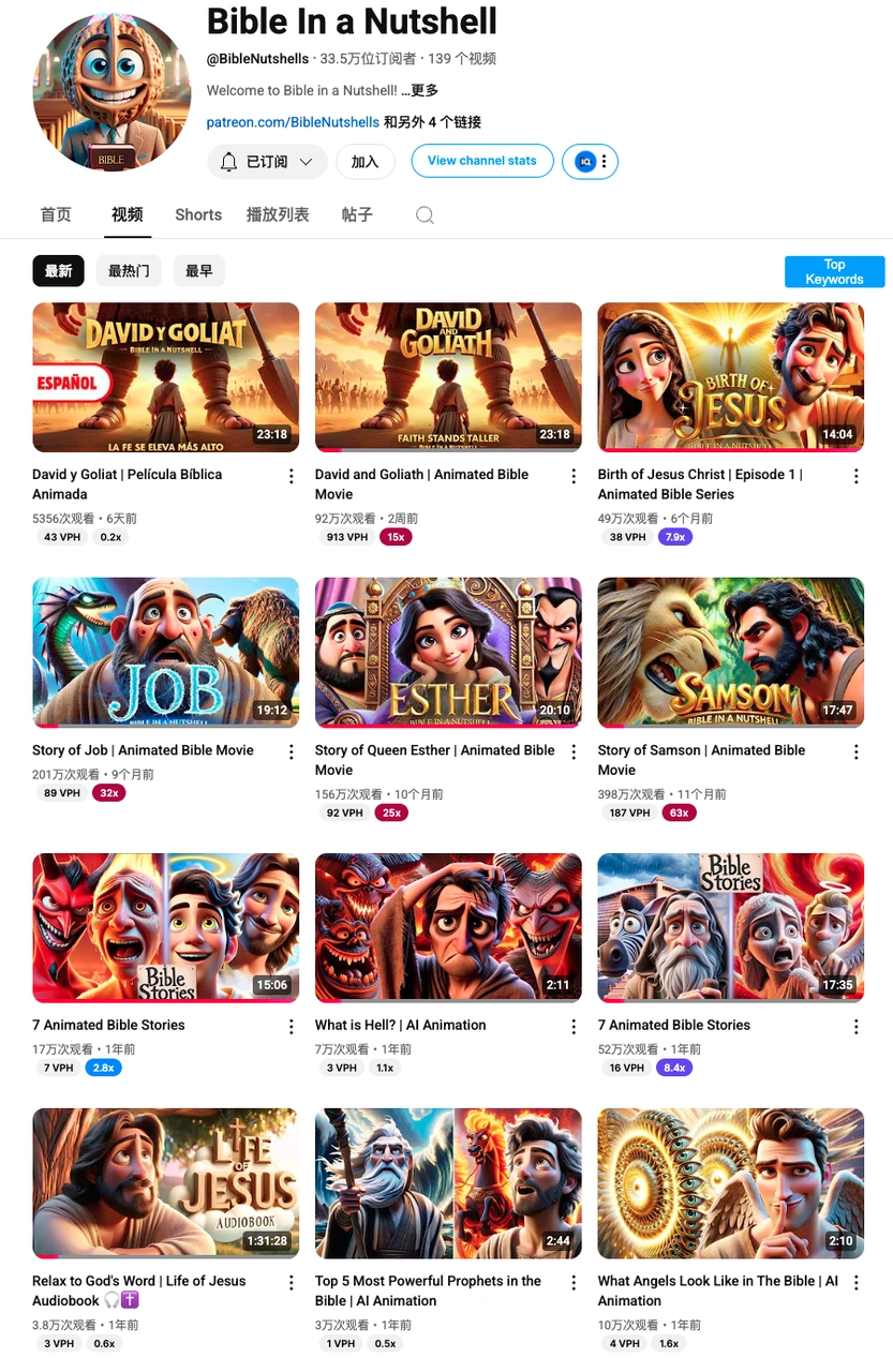 - 为什么选择拆解圣经赛道的AI 动画频道?