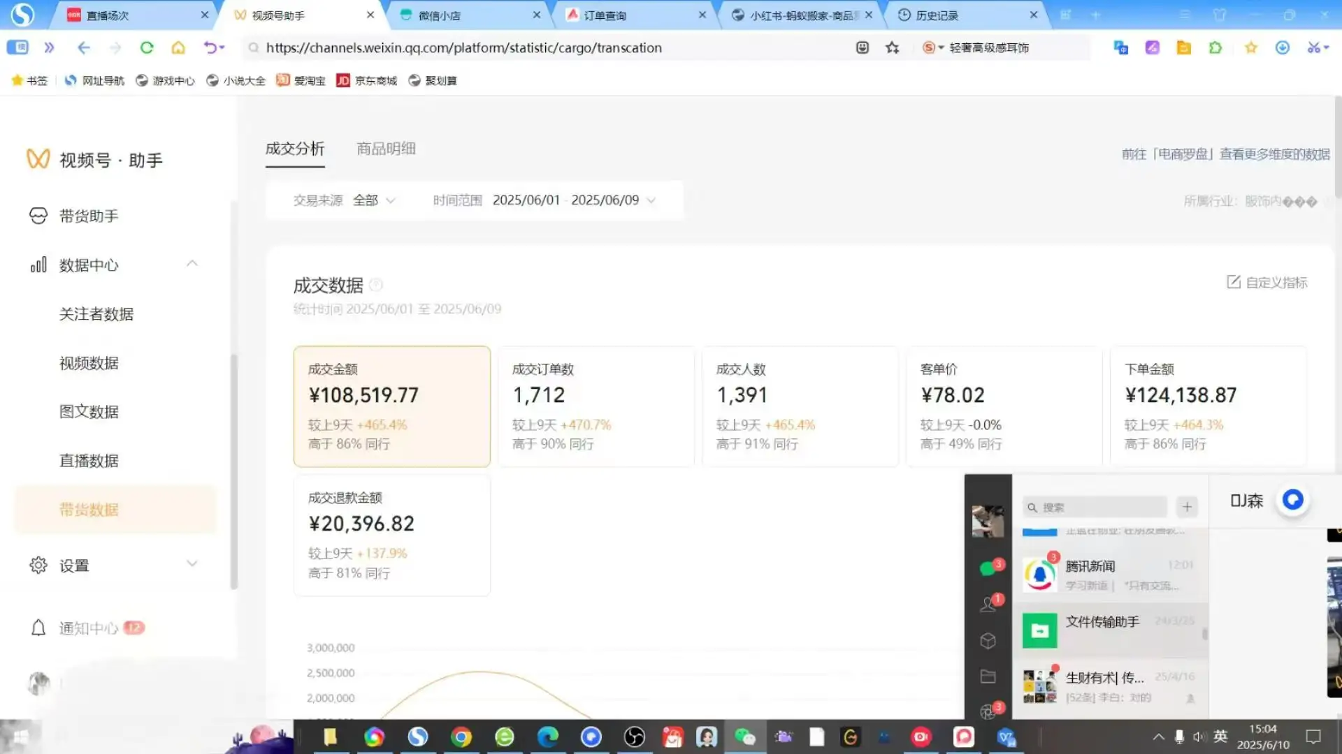 • 根据以往做电商的逻辑,看一眼视频号广场的店铺后台我就知道那些账号的店铺数据,因为之前测试过红书店铺和直播项目以及大学时期很多时间有测试跑通项目的经历,所以那些打视频号无人的逻辑基本看一眼就拆解出来,于是带着几个朋友立马测试进行入场开跑。​