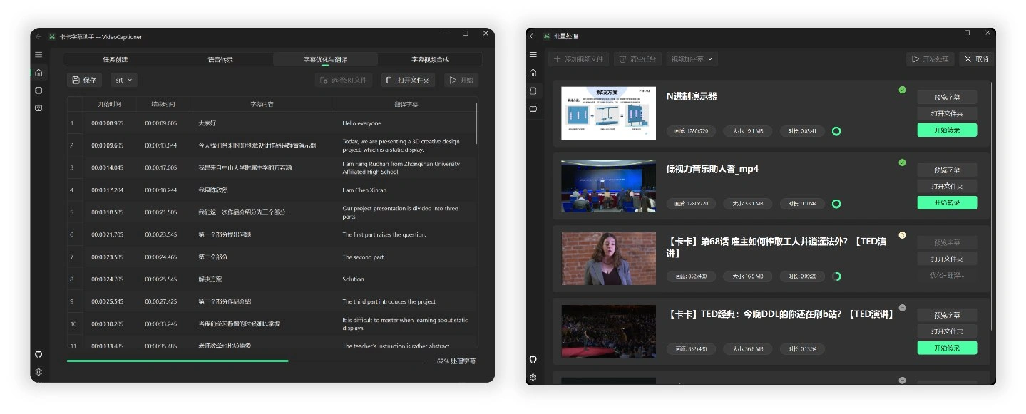 - 📝 直观的字幕编辑查看界面,支持实时预览和快捷编辑