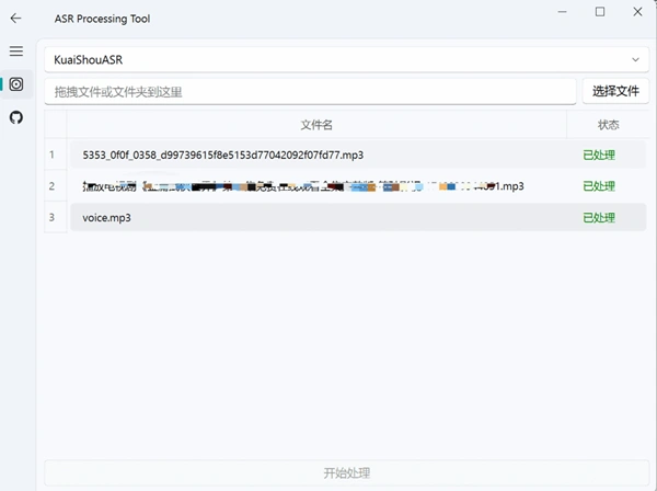 • 开始处理:点击“开始处理”按钮,程序将自动开始转换,并在完成后在原音频目录生成.srt或.txt字幕文件。(默认保持 3 个线程运行)