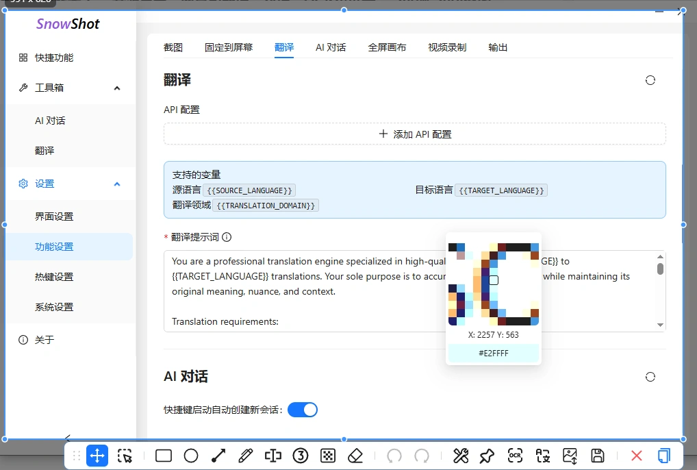 - 款功能强大的截图工具,集成了文字识别、翻译和 AI 对话等功能。