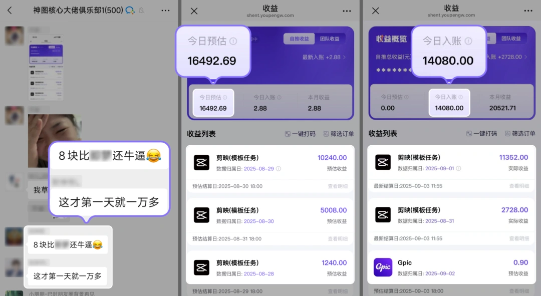 • 现在单条剪映模板视频的收益轻松突破万元,完全不需要粉丝基础