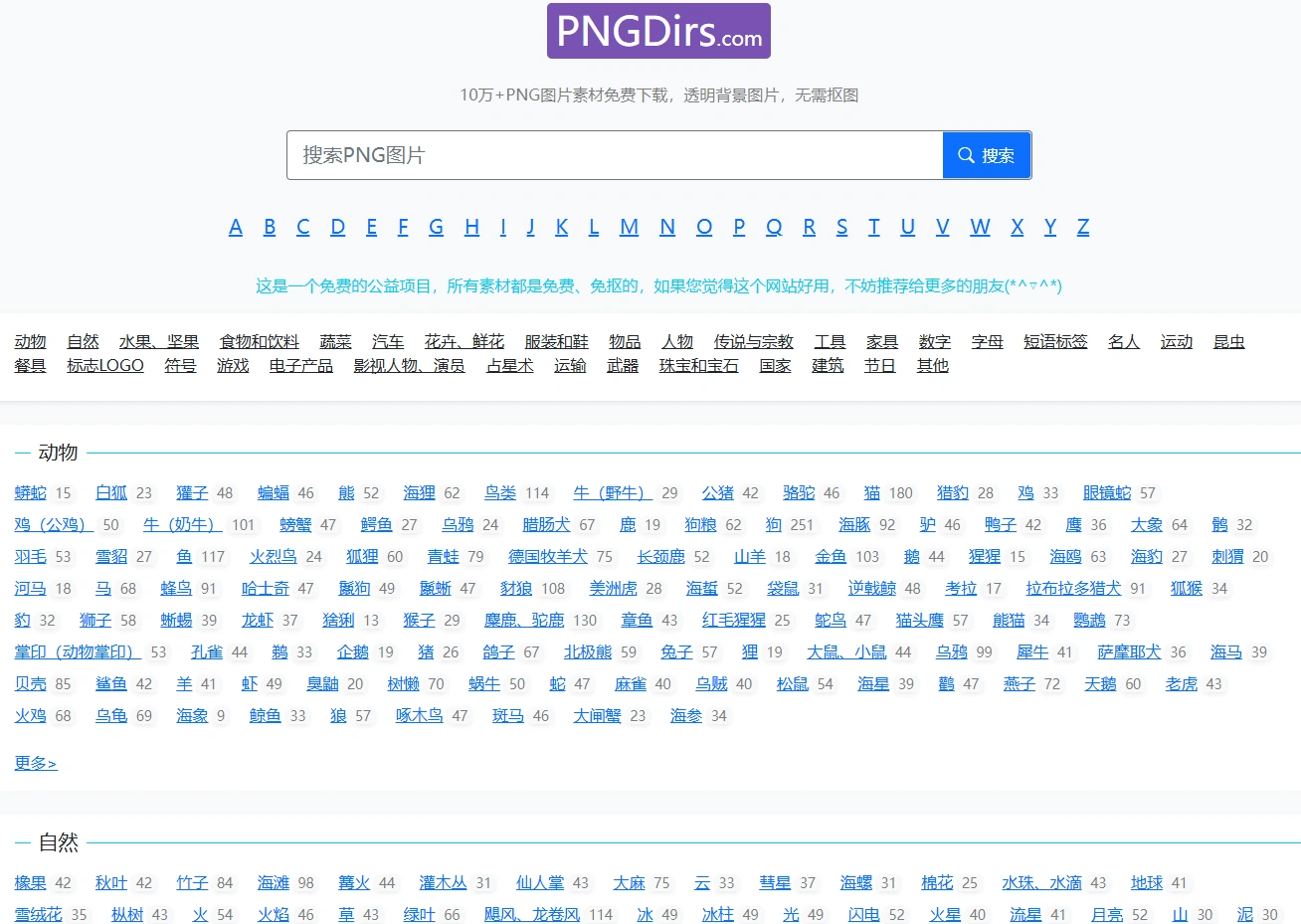 • 这个网站内涵盖了100000+免扣素材,素材均按品类A-Z进行分类