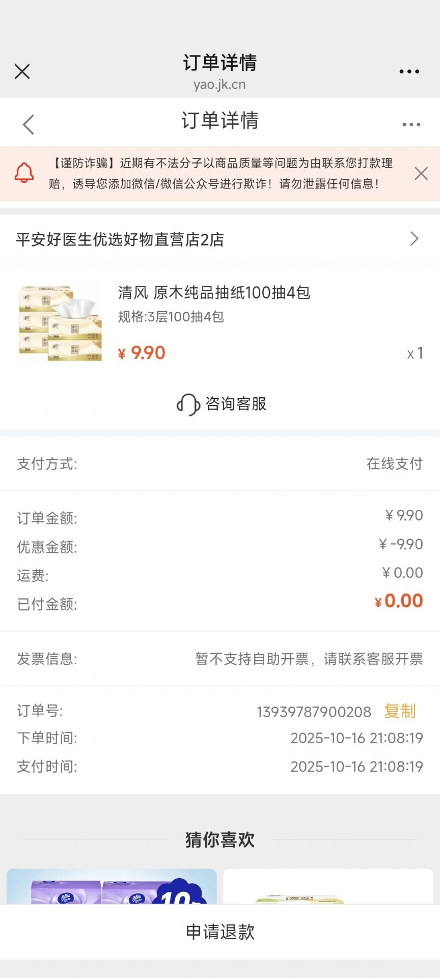 第一个链接抽9.9优惠券,然后0买纸巾