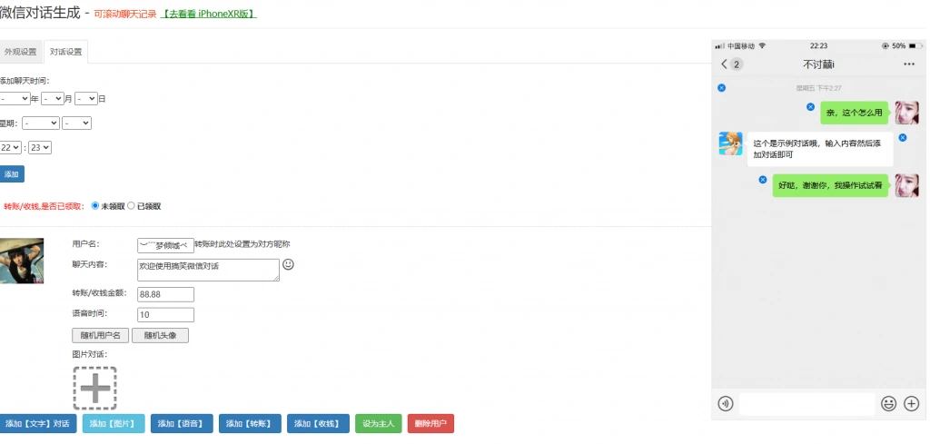 - 支持时间、用户名、多用户、头像等设置,这种也被称之为装逼生成器,免费使用,无需注册。