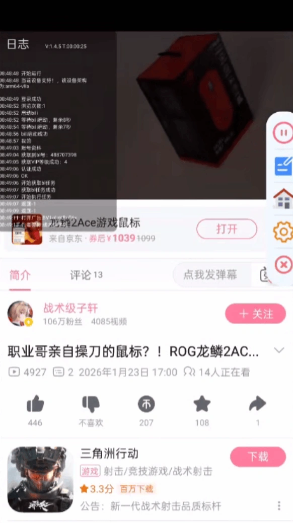 - 哔哩哔哩全自动挂机刷-短视频-点赞-点关注-评论-留痕