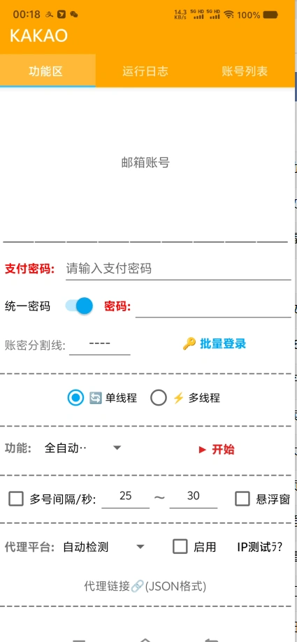 - 协议可以无限添加账号,同时跑项目